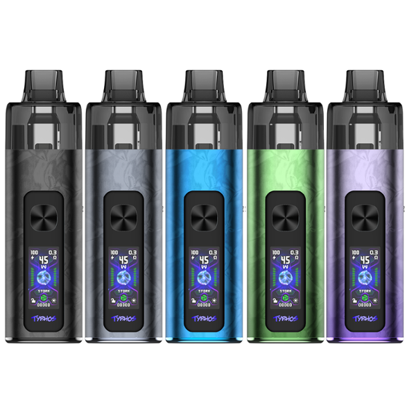Der Typhos verfügt über einen integrierte Akkuzelle mit eine Kapazität von 2.000 mAh. Der Mod hat eine maximale Ausgangsleistung von 45 Watt. Der Typhos ist mit den Ausgabemodi Storm und Waves ausgestattet. Wichtige Betriebsdaten wie Leistungseinstellungen und die Akkuanzeige lassen sich auf dem 1,05 Zoll HD-Farbdisplay ablesen. Die Aufladung ergolgt über einen USB-C Anschluss (DC 5V/2A).